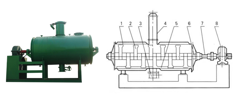 1、殼體  2、耙齒  3、出料裝置  4、加料裝置  5、粉碎棒