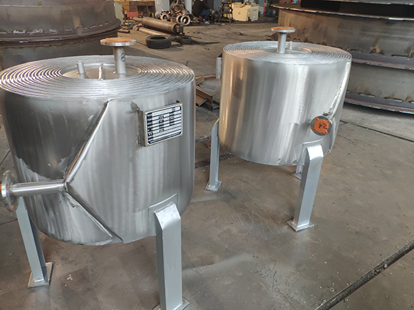 2、在殼體上的接管采用切向結構,局部阻力小,由于螺旋通道的曲率是均勻的,液體在設備內流動(dòng)沒(méi)有大的轉向,總的阻力小,因而可提高設計流速使之具備較高的傳熱能力。
